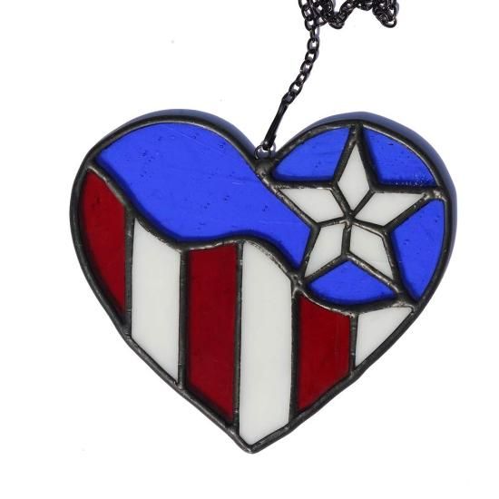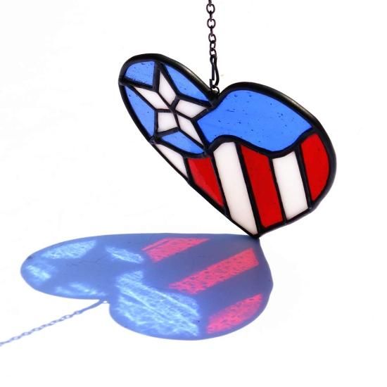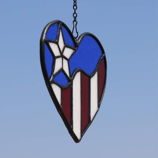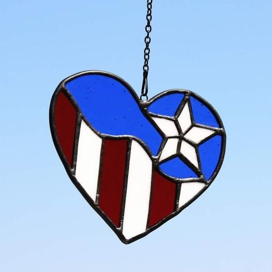 HAOSUM American Flag Ornament Heart Stained Glass Window Hangings July 4th Decor