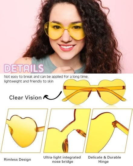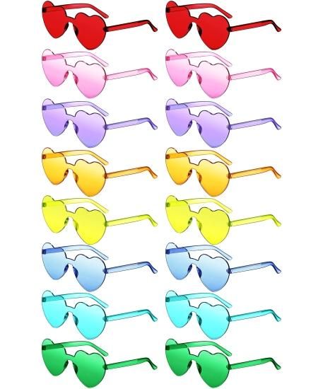 Colzzy 16 Pairs Heart Shaped Rimless Sunglasses Transparent Candy Color Frameles