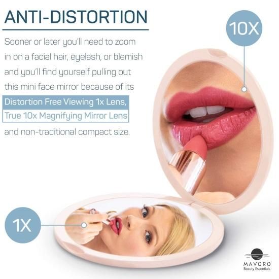 Magnifying Compact Mirror for Purses 1x/10x Magnification Double Sided Travel M