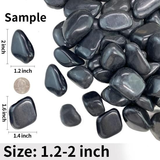 Natural Polished Black Pebbles - Decorative Black River Rocks for Plants Fish Ta