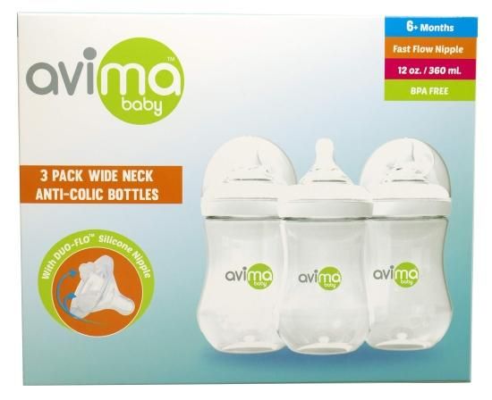 Avima 12 oz Anti Colic Infant Bottles BPA Free Wide Neck with Fast Flow Nipples