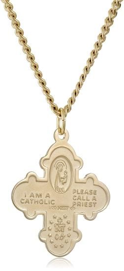Amazon Collection Men's 14k Gold-Filled 4-Way Medal Pendant Necklace with Gold-P