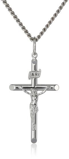 Curated Sterling Silver Solid Tubular Crucifix Cross Pendant Necklace with Stain