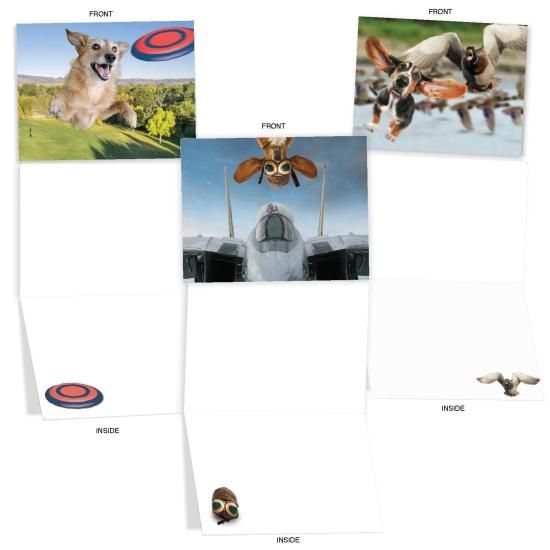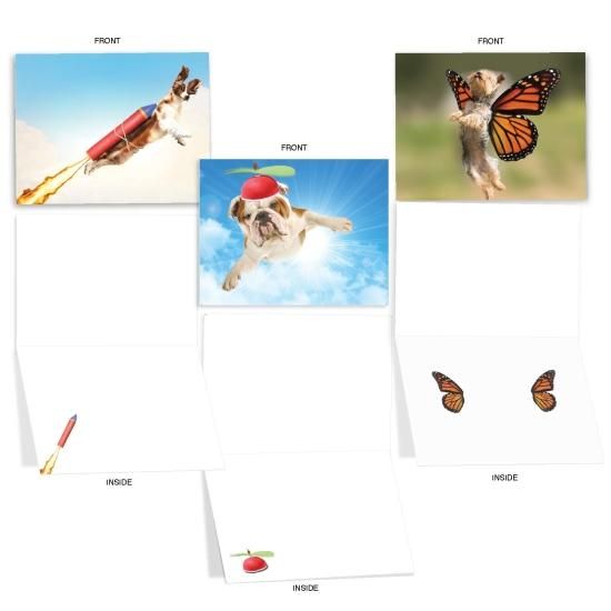 The Flying k9?all-occasion Funny Paperカード 10 Assorted Blank Note Cards M6448OCB