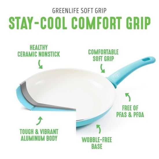 GreenLife Soft Grip Healthy Ceramic Nonstick 7 and 10 Frying Pan Skillet Set PFA