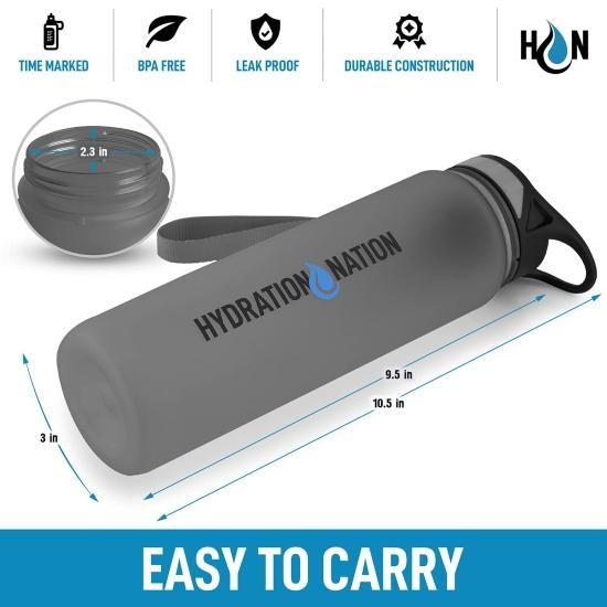 Hydration Nation 32oz Water Bottle With Time Marker - Leak Proof Water Bottles W