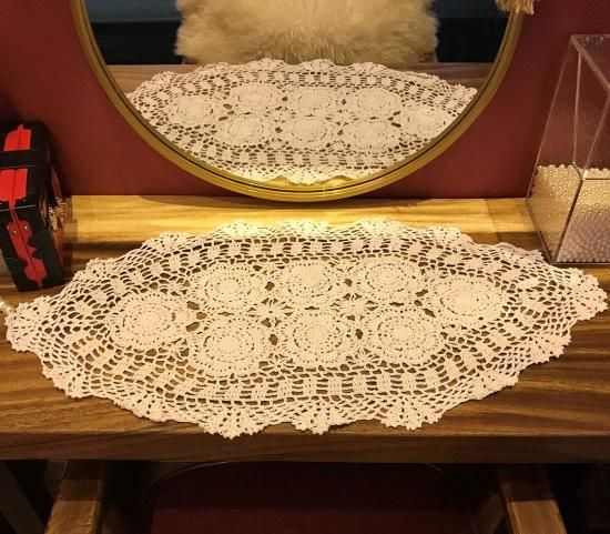 janef ベージュ ハンドメイド かぎ針編み コットン テーブルランナー レース ドイリー 楕円形 ドレッサー スカーフ 16 x 27インチ