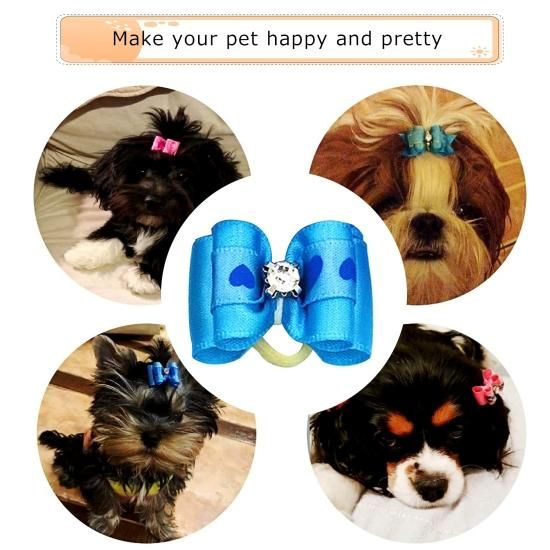 JpGdn 50pcs /25Pair Small Dog Hair Bows with Rubber Bands and Rhinestones Puppy