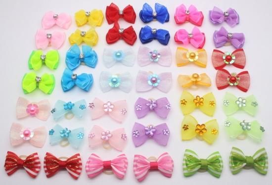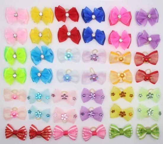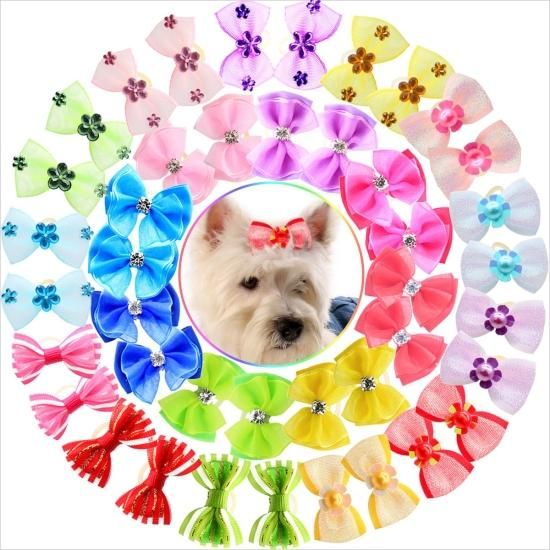 YOY 40pcs / 20 Pairs Adorable Grosgrain Ribbon Pet Dog Hair Bows with Rubber Ban