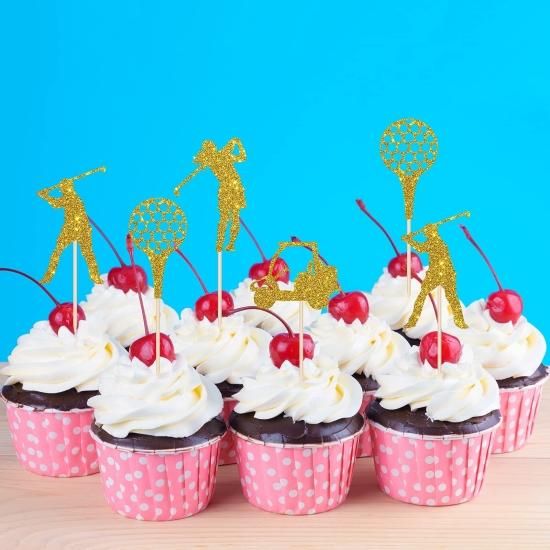Gold Glitter Golf Cupcake Toppers - Golf Themed Cupcake Decorations - Baby Showe