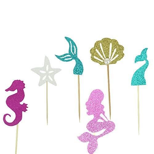 Wootkey Glitter Mermaid Theme Birthday Cake Topper Under the Sea Party Supplies