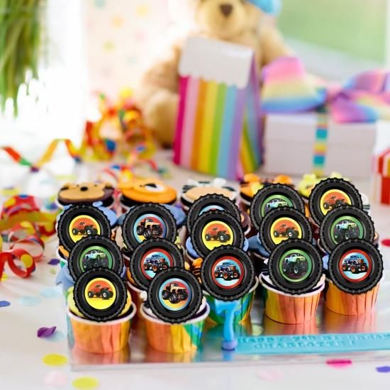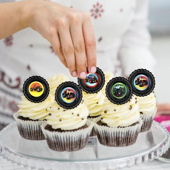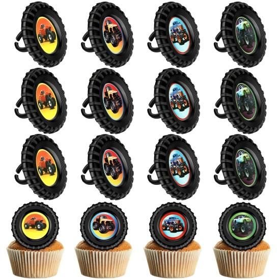 48 Pieces truck Cupcake Rings truck Jam Cupcake Topper Rings Colorful Trucks Bir