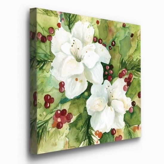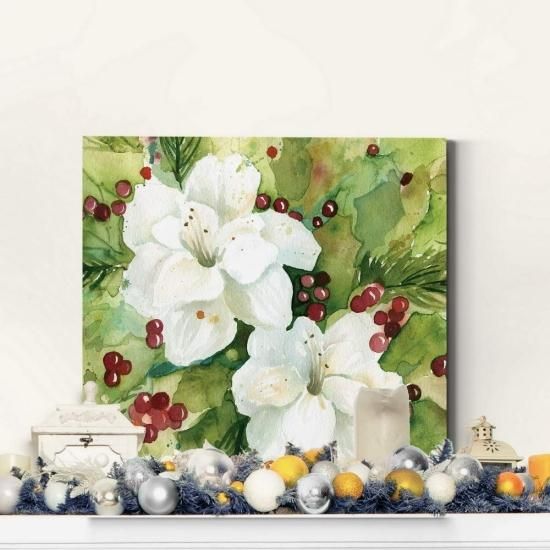 Renditions Gallery ヒイラギの葉 壁アート クリスマス&冬のアートワークフェスティバル レッド&グリーン 花 花柄 プレミアムギャラリーラップ