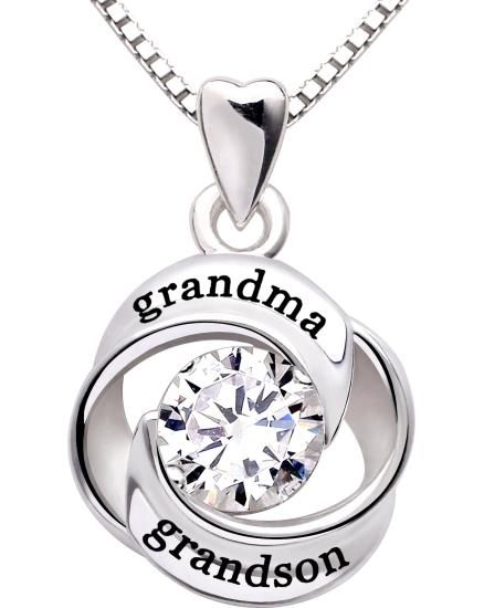 ALOV Jewellery Sterling Silver grandma and grandson Love Heart Cubic Zirconia Pe