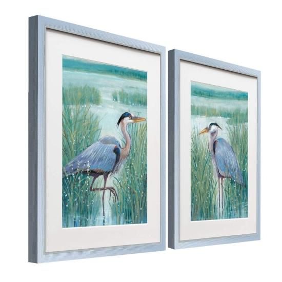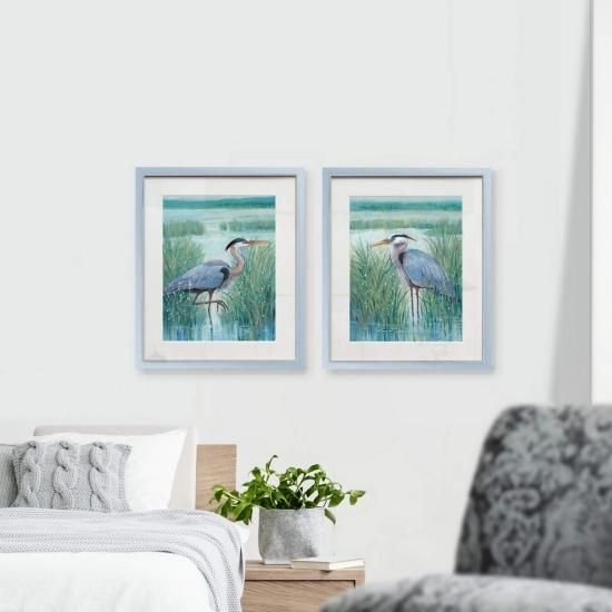 Renditions Gallery Wetland Heron 2 Piece Framed Artwork Set Marsh & Swamp Bird B