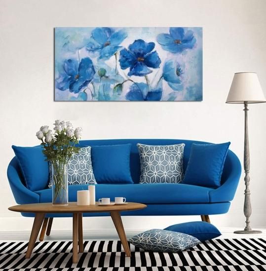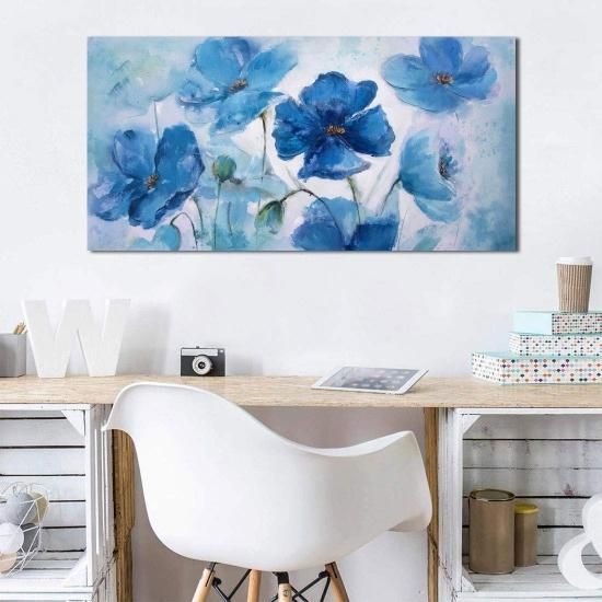 大きな壁アート キャンバスアート 壁装飾 青い花 テーマ 絵 抽象的な花柄プリント フレーム入りウォールアート 寝室の壁装飾 リビングルーム用 モダン装飾 すぐ