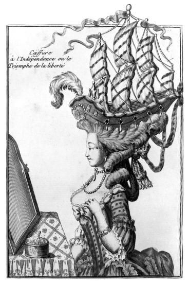 自由の勝利 C1781 NFashionable Hairdo or The Triumph Of Liberty フランス漫画C1781 アメリカ独立戦争と女