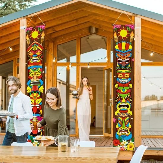 Hawaiian Luau Party Decoration Tiki Porch Banner Welcome Aloha Sign for Hibiscus