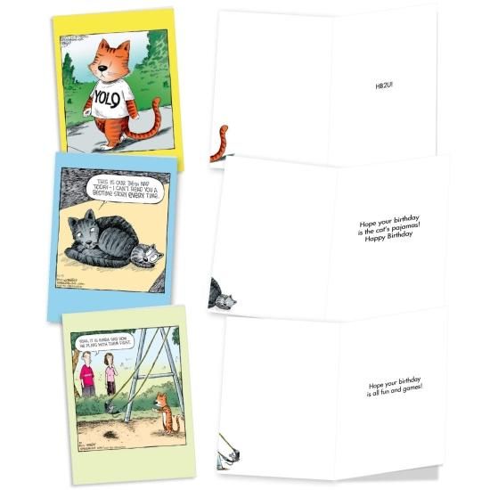 Dave Coverly 's Feline Funnies誕生日ユーモアGreeting Card Box of 10 Designs SKUA2679BDG