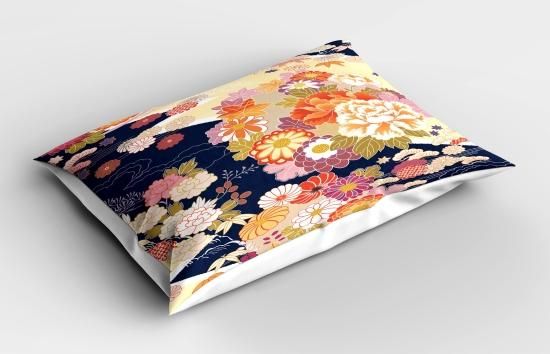 Japanese Pillow Sham by Ambesonne、従来の着物風モチーフコンポジションアジアエスニック花柄パターンヴィンテージアートワーク、装飾