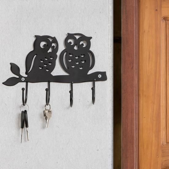 MyGift Wall Mounted Decorative Black Metal Key Rack Holder Organizer Wall Hangin