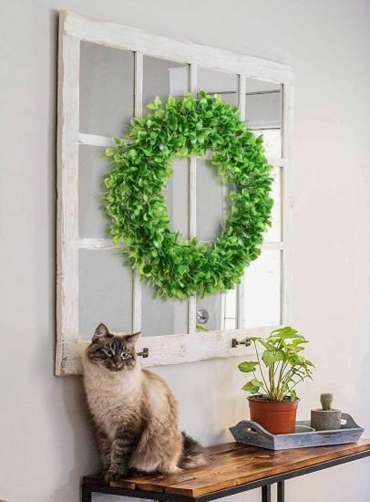 Lvydec 人工グリーンリーフリース - 20インチの大きな箱ウッドリース フロントドア壁ウィンドウ ファームハウスデコレーション