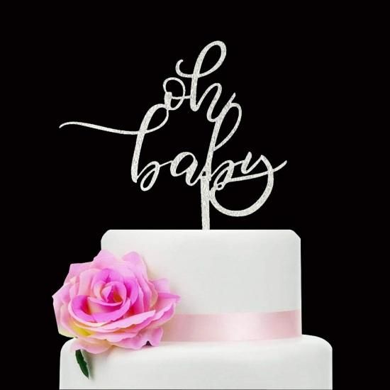 Silver Glittery Oh Baby Cake Topper New Baby 1st Birthday Party Photo Booth Prop