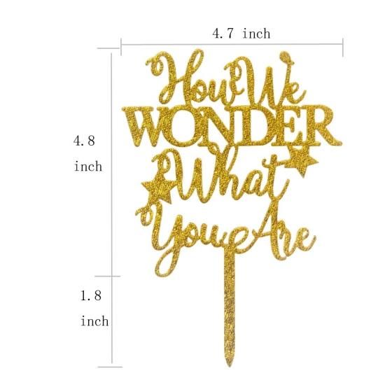 YzYbuaego How We Wonder What You Are Cake Topper with Stars - Gender Reveal Cake