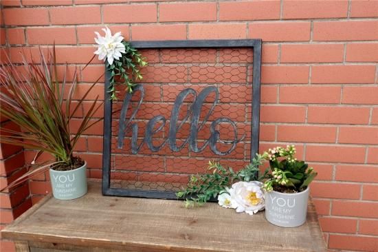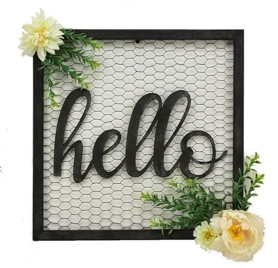 Parisloft Hello スクリプト メタルサイン 装飾 壁アート ギャラリー壁または玄関 四角いメタル壁掛けアートサイン 15.7 x 15.7 x 1