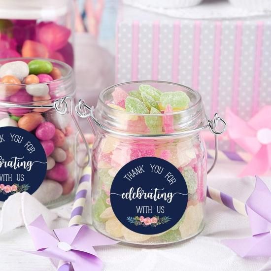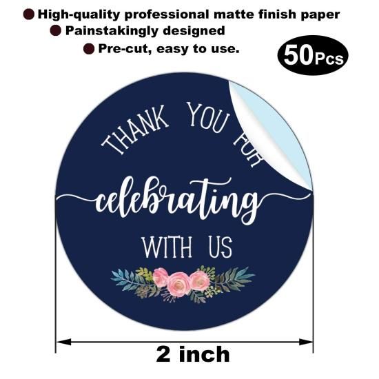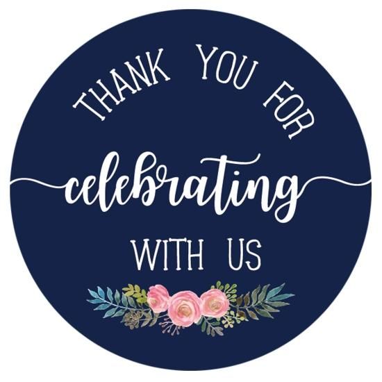 50 Pack Dark Blue Floral Thank You for Celebrating with Us Stickers Wedding Stic