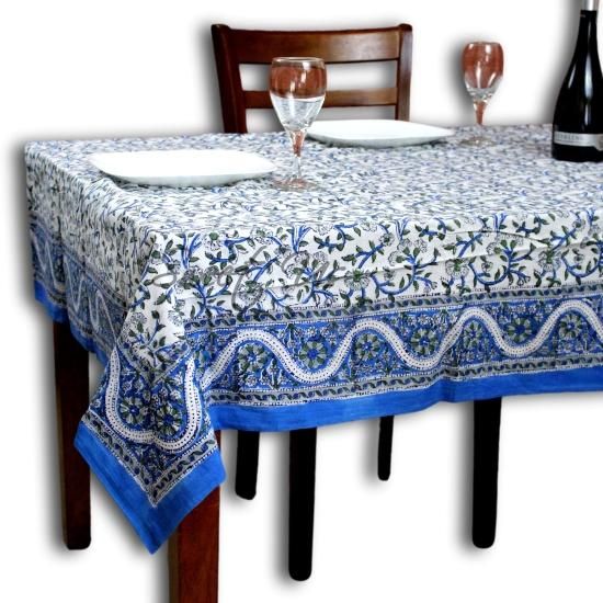 India Arts ハンドブロックプリント 花柄テーブルクロス 正方形テーブル コットンテーブルリネン ビーチシート ブルー 正方形 72 x 72インチ