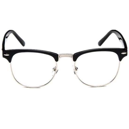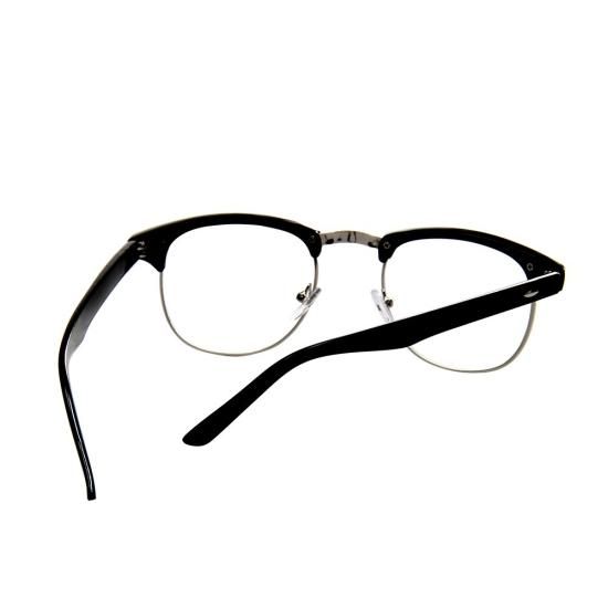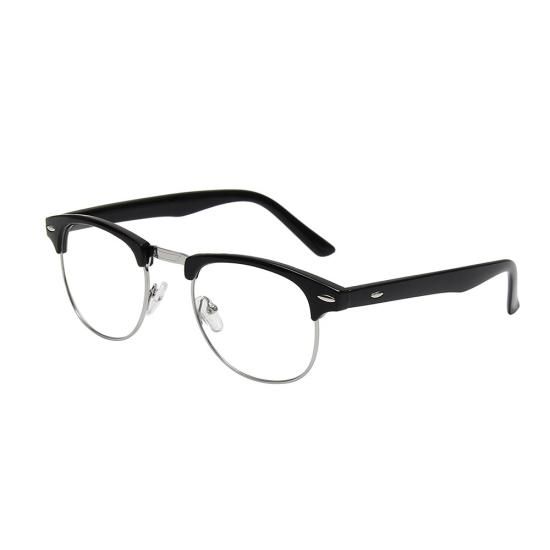 白鳥の新ヴィンテージクラシックハーフフレームセミリムレスクリアレンズメガネブラック