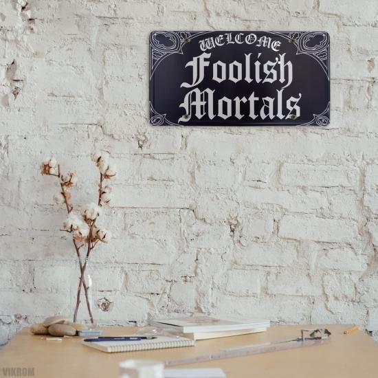 Angeloken Retro Metal Sign Vintage Welcome Foolish Mortals Sign for Plaque Poste