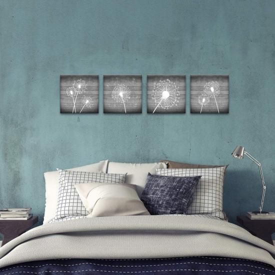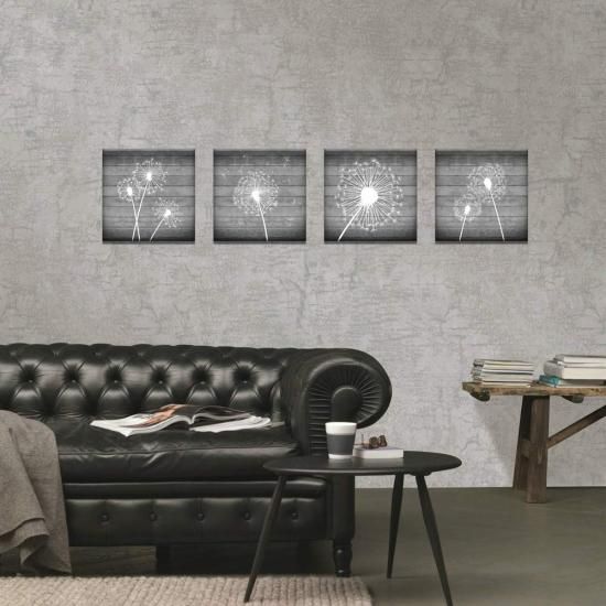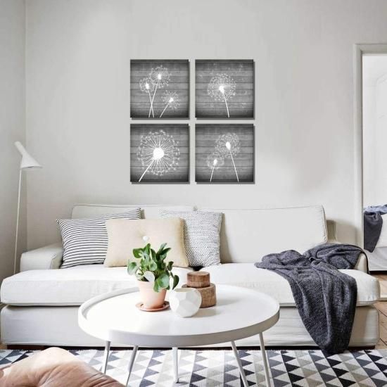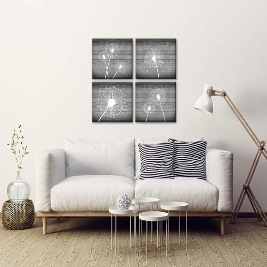 sechars 4ピース 花 壁アート ホワイトとグレー タンポポポ 絵画 キャンバスペイント 木製フレーム モダン フローラル キャンバス アートワーク 寝室
