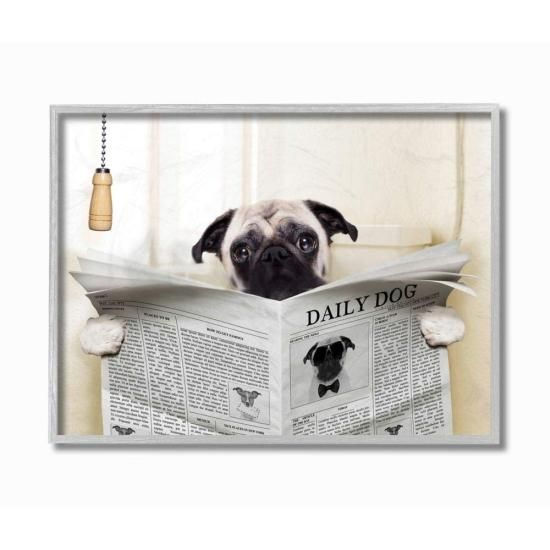 Stupell Industries パグリーディング 新聞 浴室 グレーフレーム ウォールアート 16 x 20インチ 家の中のアーティストによるデザイン