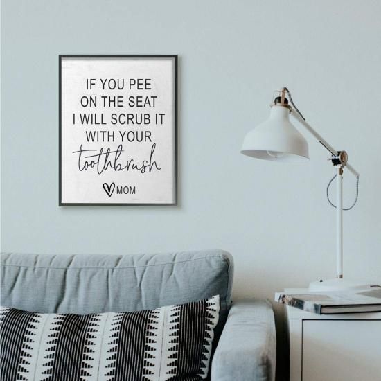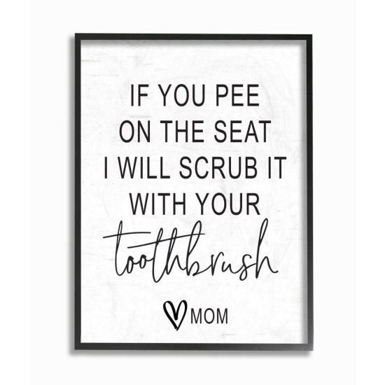 Stupell Industries Pee On Seat 面白い ワードバスルーム ホワイトデザイン ブラック フレーム入りウォールアート 24 x 30