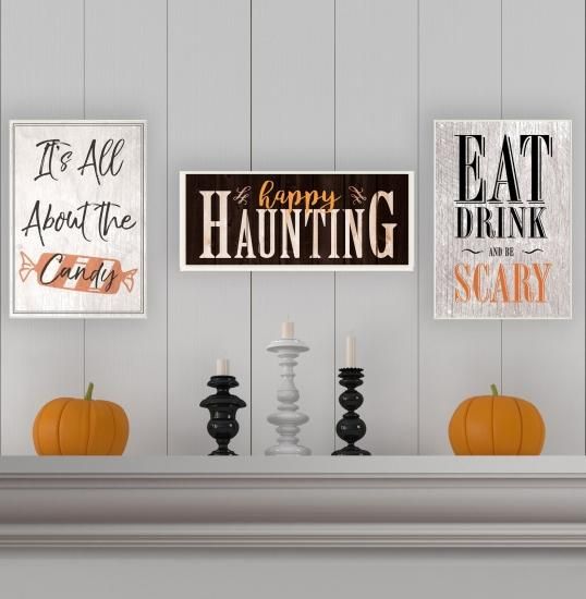 The Stupell Home D?cor Collection Happy Haunting 不気味なタイポグラフィ 壁飾りアート 7 x 17インチ