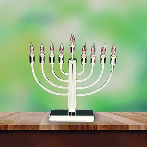 Silverplated Electric Menorah Withちらつき電球をシミュレートするRealキャンドル