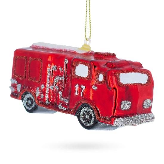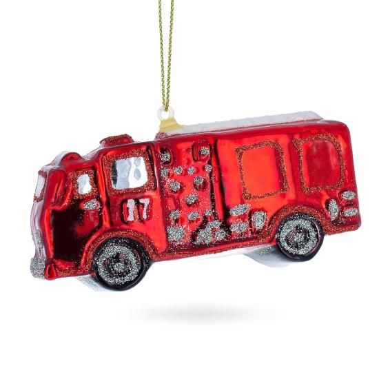 BestPysanky 消防車 ガラス クリスマスオーナメント