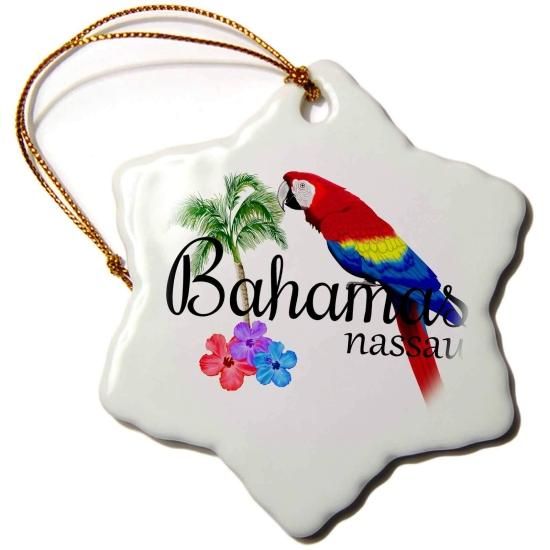 3dRose Macdonald Creative Studios - 島 - バハマナッソー・カリビアンのお土産、トロピカルパロットとフラワー。 - オーナメ