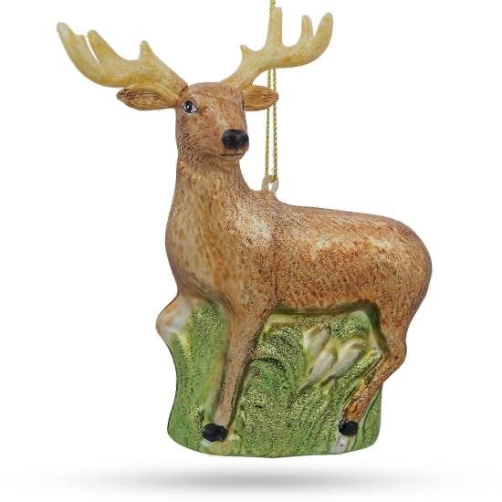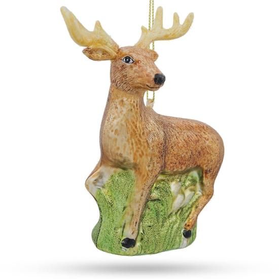 BestPysanky ホワイト - 尾の鹿 ガラス クリスマスオーナメント 4.75インチ