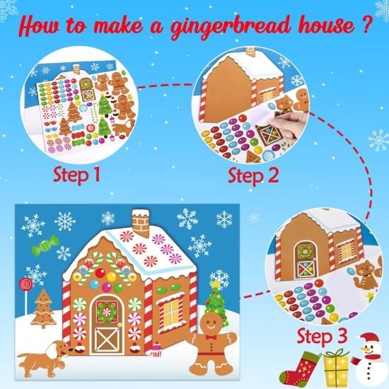 Make-A-Gingerbread House ステッカー クリスマスパーティー ゲーム/クラフト/アクティビティ/記念品/サプライ - 13種類の完成品