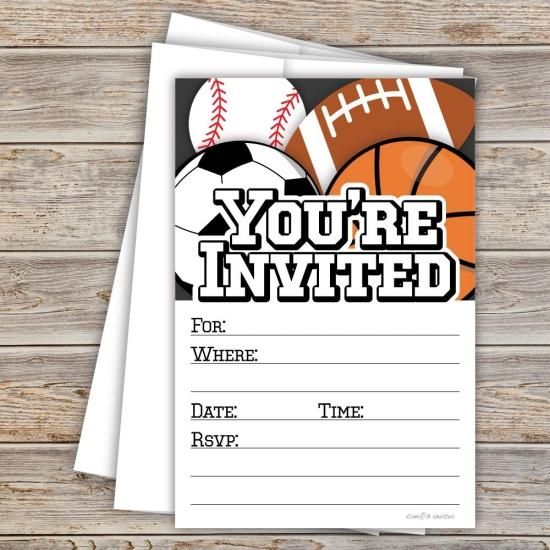 Sports Party Invitations 20 Count with Envelopes - Football Soccer Baseball and
