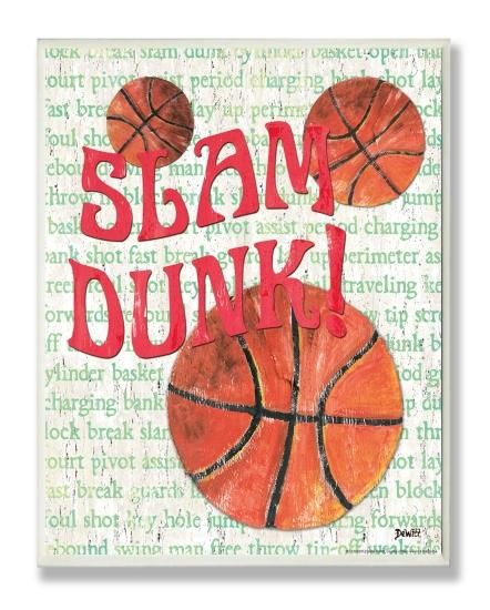 The Kids Room by Stupell Slam Dunk Basketball Typography Rectangle Wall Plaque 1