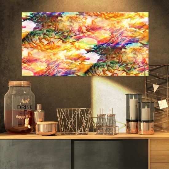 Bokeh花シームレスなフローラルキャンバスの壁アートPhotgraphyアートワーク印刷 32x16 イエロー PT6107-32-16