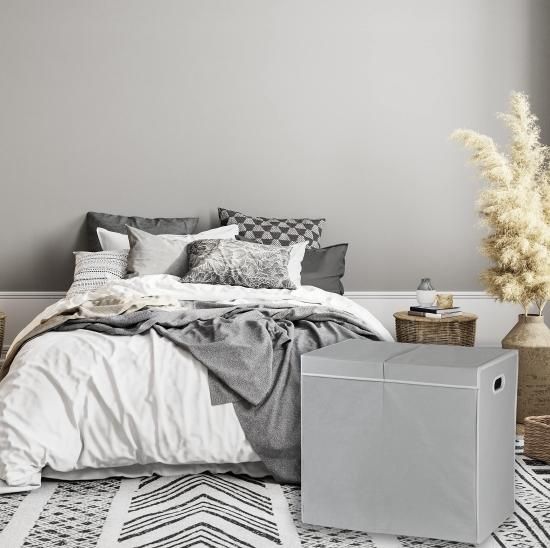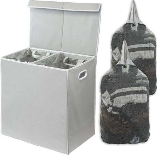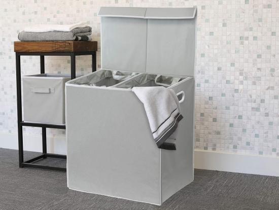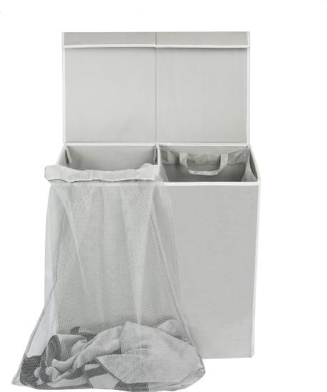 シンプルな家庭用ランドリーハンパーの蓋。 Double Hamper グレー BO-039-1