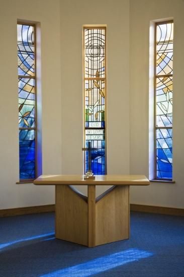John Doornkamp デザイン写真 クロスと聖体拝領のエンブレムとステンドグラス窓 教会 ドール シェフィールド イングランド ポスター プリント