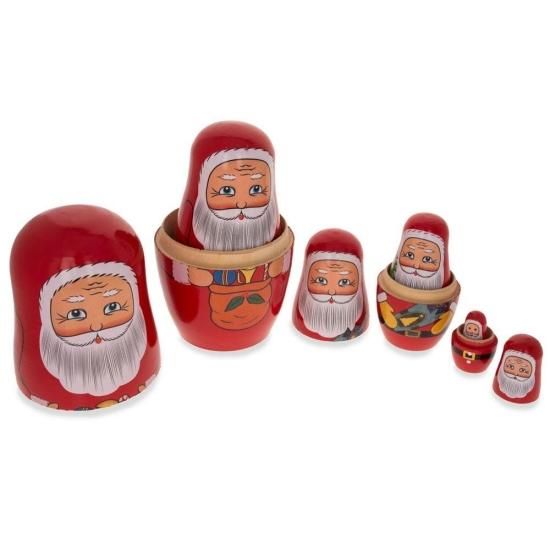 14cm Set of 6 Santa Claus with Christmas Gifts Wooden Nesting Dolls