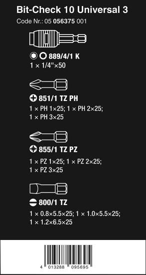 Wera Torsion 8600-9/TZ Sheet Metal Bit Set by Wera
