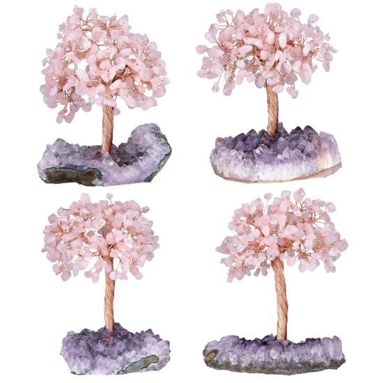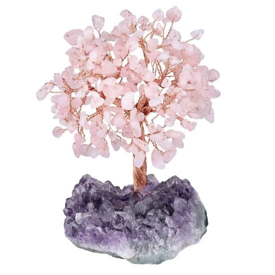 Amogeeli Healing Crystal Copper Money Tree with Raw Amethyst Cluster Base Zen St